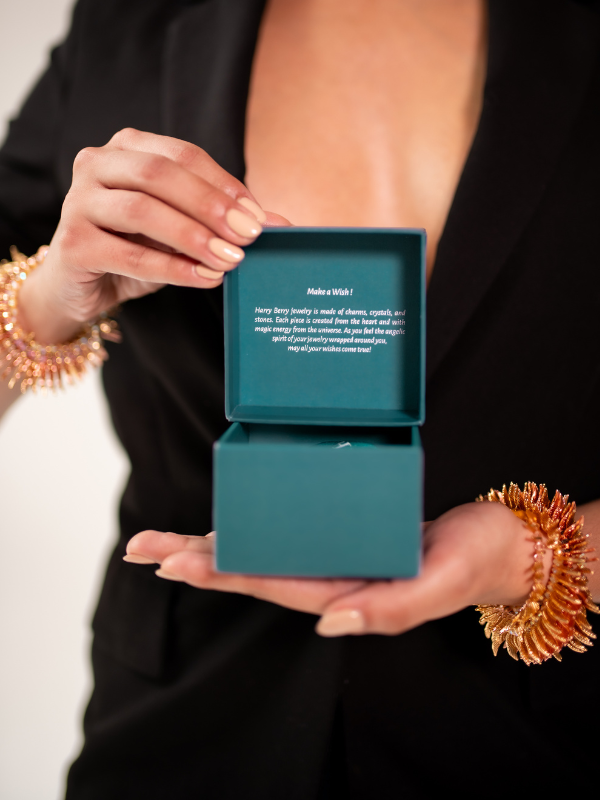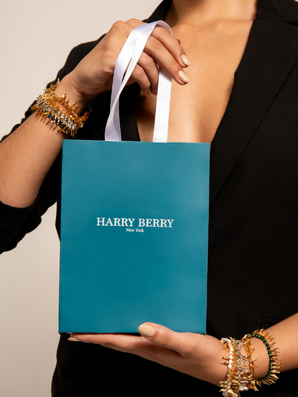 Discover the epitome of celestial gifting with every purchase at Harry Berry. Because we believe that every occasion is a divine gift to be celebrated, we ensure our pieces are presented with unparalleled refinement. Each item is carefully encased in a satin pouch and nestled within our signature branded box. To complete the ensemble, every purchase is accompanied by our luxe shopper, adding an extra touch of magic. Whether it's a token of appreciation for a loved one or a treat for yourself, Harry Berry's packaging elevates the art of giving to a whole new level, making every moment unique.